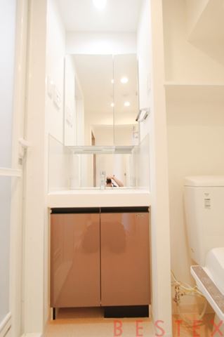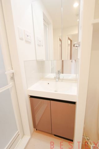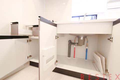 水回りも細やかな配慮が行き届いており、洗面台・バスルーム・トイレはそれぞれ独立。洗面所には収納も設けられており、日用品を整理しやすく清潔感を保てます。浴室は浴室乾燥機付きで、雨の日の洗濯も安心。さらにエアコン、システムキッチン、温水洗浄便座など日常を支える設備が充実しており、快適な暮らしを後押しします。