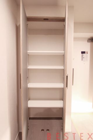 シューズボックスと収納棚があり、玄関周りの収納もバッチリです。