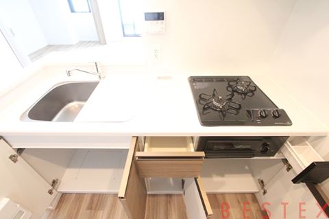 キッチンは2口のガスコンロ・システムキッチンでございます!お料理がはかどりますね♪