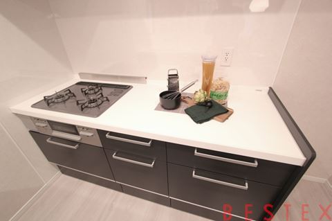 3口ガスコンロのキッチンで調理スペースも広々となっております。