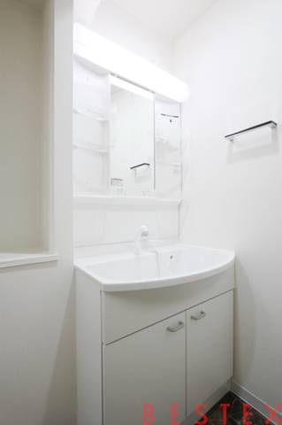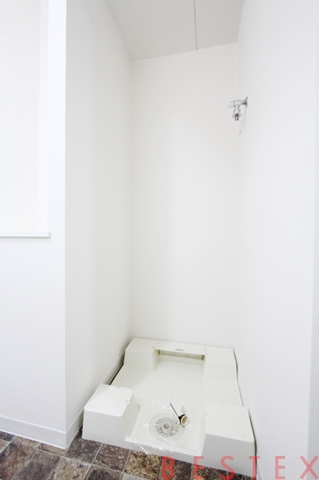 脱衣所内には独立洗面台と洗濯機置き場のセット。