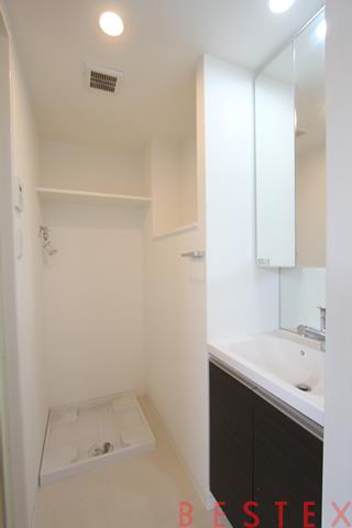 脱衣所には独立洗面台と洗濯機スペースがあります。