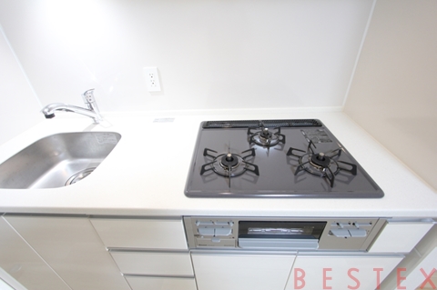 1LDKにファミリーサイズの3口ガスコンロ、グリル付きなのは嬉しいポイントですね♪
